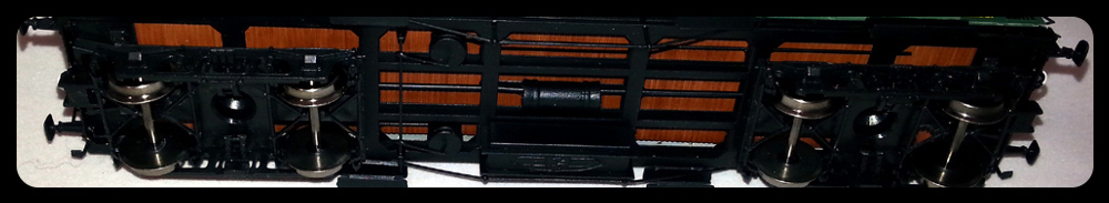 Estos son los bogies que incorporan el nuevo modelo, equipado con ruedas RP-25. Se aprecia la cuidada ejecución del bastidor, timonerías, cilindros...